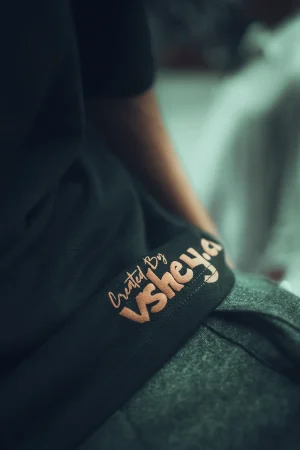 On the front, the word Shikayat stands bold, simple, raw, and powerful. It isn’t just a word but the soul of Kaifi Khalil’s song, translated into fabric through this collaboration with Vshey. It carries the silence of unspoken emotions and the weight of feelings that linger even after words are gone. In the bottom corner, created by Vshey.co, the word appears like an artist’s final signature, keeping the front minimal in design yet infinite in meaning.