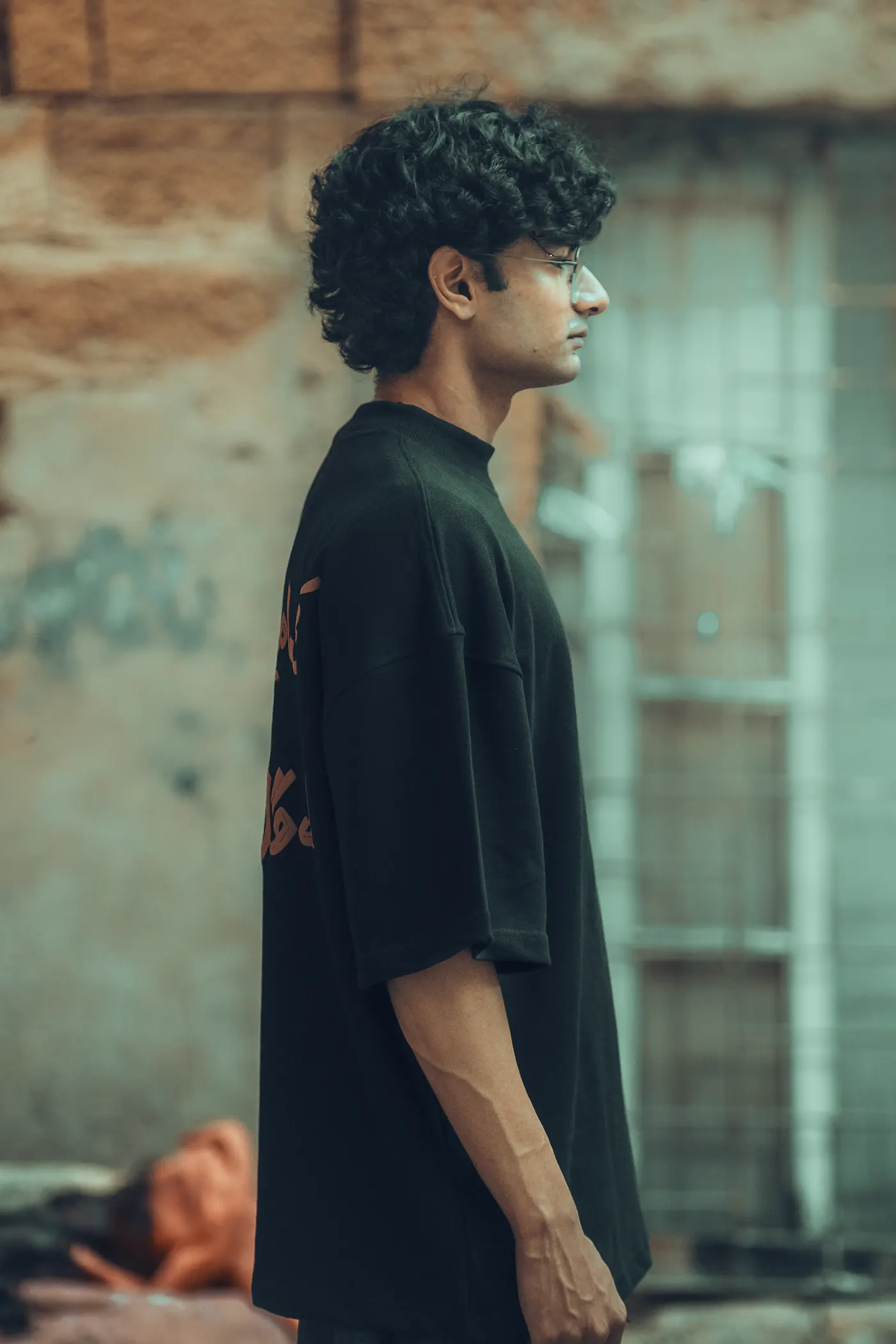The back carries Kaifi Khalil’s words from the song “Kabhi Umeedein Thi Tum Se, Ab Gila Bhi Nahin.” The verse feels alive, a confession both personal and universal. Below, music player icons play, pause, and next turn the design into rhythm, echoing the song’s presence on fabric. Above, a hand-drawn figure with his head bowed, surrounded by rough pencil strokes, transforms the space into something raw and emotional, like a diary page of someone who once hoped, once complained, but now sits silent.